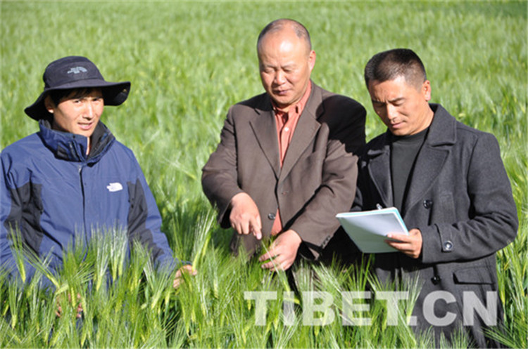 禹代林1964年出生于四川。1985年,他大學(xué)畢業(yè)后來(lái)到西藏自治區(qū)農(nóng)牧科學(xué)院農(nóng)業(yè)研究所,致力于青稞新品種的培育和推廣。34年來(lái),他完成了5000份大麥資源特征性的鑒定與繁種入庫(kù),研發(fā)推廣“藏青2000”青稞品種,農(nóng)民種植平均每畝增產(chǎn)50斤以上增收。如今,他已經(jīng)推廣了9個(gè)青稞新品種,栽培技術(shù)示范推廣30余萬(wàn)畝,累計(jì)培訓(xùn)農(nóng)民達(dá)5.5萬(wàn)人。圖為2014年禹代林(中)和同事在白朗縣觀察記載藏青2000的主要特征、特性 禹代林供圖。