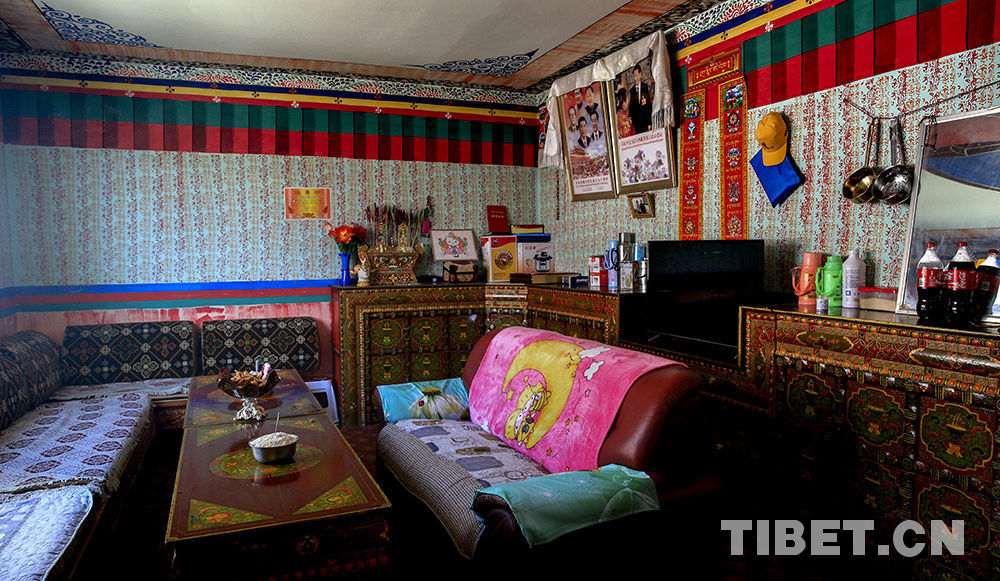 圖為“德吉藏家”民宿村極具藏式特色的室內(nèi)裝飾 攝影:唐軍
