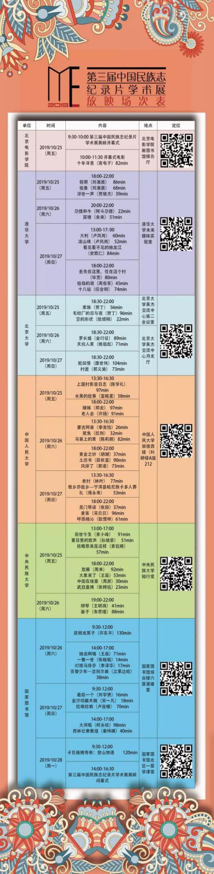 為有效拓展民族志紀錄片的傳播對象,讓參展影片得到更多的社會關注,本屆影展將分別在北京大學、清華大學、中國人民大學、中央民族大學以及國家圖書館等多地舉辦。與此同時,主辦方將邀請專家學者、知名導演對影片進行評議,并邀請紀錄片作者與觀影者進行交流互動,進一步強化學術交流氛圍,力求以最具活力和生動的學術討論形式,推動中國民族志紀錄片進一步發(fā)展。