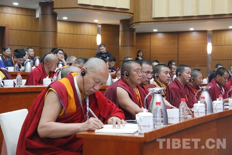 圖為正在中華文化學(xué)院(中央社會主義學(xué)院)學(xué)習(xí)的西藏自治區(qū)各大寺廟的中青年經(jīng)師學(xué)員在學(xué)術(shù)論壇上認真作筆記 攝影:易文文