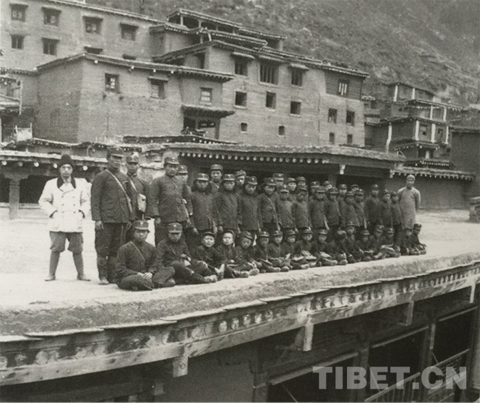 1918年,義敦縣府即毀于戰(zhàn)火,直到1939年才實(shí)質(zhì)性復(fù)治。該年7月,第24軍一部到達(dá)義敦,開始重新修建縣府。期間因地方實(shí)力派對(duì)義敦復(fù)治采取抵制態(tài)度,屢生武力沖突,直到年底,縣府才基本修建完畢,義敦縣府正式辦公。當(dāng)時(shí),所謂與簡(jiǎn)陋的縣政府形成鮮明對(duì)比的德格縣(需要說明的是,當(dāng)時(shí)的義敦縣并沒有學(xué)校)小學(xué)“豪華的學(xué)堂,其高大氣派的校舍”。照片的背景,其實(shí)是西康有名的德格土司官寨。