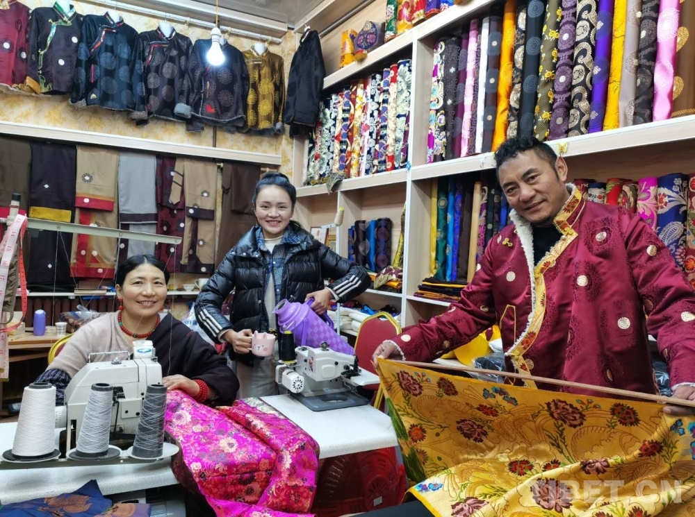 據(jù)介紹,他們的民族服飾產(chǎn)品服裝類,多是由旦周措毛裁剪、縫制。旦周措毛于2010年9月至2011年8月參加了由玉樹市扶貧口免費組織的農(nóng)牧民縫紉培訓(xùn)班,后在家里經(jīng)過半年多時間的苦練,終于出師,可以獨自縫紉五種以上藏式服裝了。于是,他們兩口子在2013年11月注冊了公司、在結(jié)古大道拉布寺市場租下門面,經(jīng)營民族服裝?,F(xiàn)在,旦周措毛是已是有9年經(jīng)驗的縫紉師了,只要用戶說出大致樣子,無論什么樣式她都能拿出令人滿意的成品。記者在鋪子里待了近一個小時,他們賣出了一件藏式襯衫和短羊皮襖。