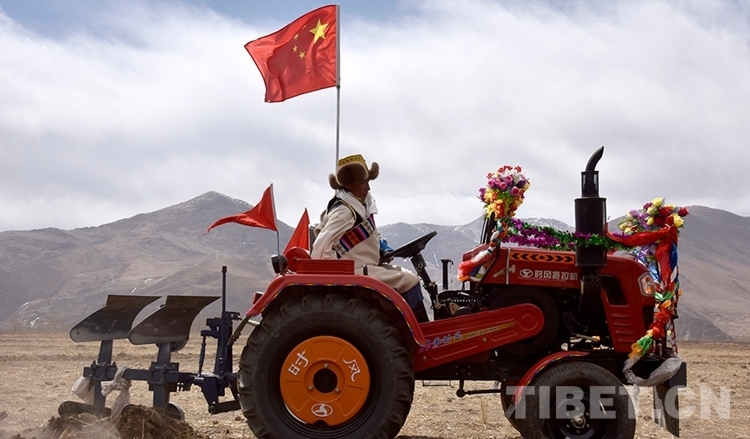 圖為2019年3月16日,西藏自治區(qū)拉薩市達(dá)孜區(qū)唐嘎鄉(xiāng)窮達(dá)村村民“鐵?!遍_犁迎春耕 攝影:王媛媛