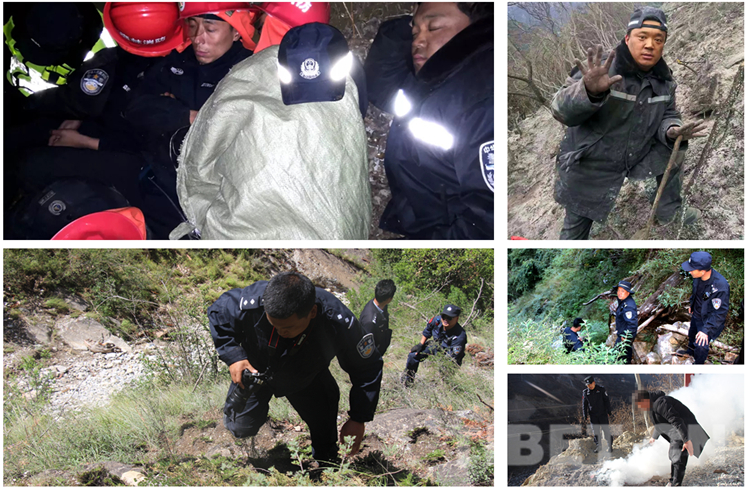 圖為安康與同事們在執(zhí)行各種任務(wù)時的畫面。其中,左上圖為安康(右一)與同事野外執(zhí)行任務(wù)時就地和衣小憩;右上圖為執(zhí)行任務(wù)中的安康渾身是泥;左下圖為安康帶隊爬山開展案件調(diào)查;右下圖為安康在執(zhí)行任務(wù)時責(zé)令違法人熄滅火點。