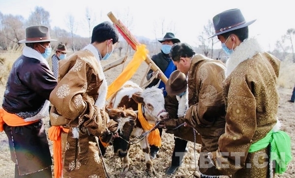 春耕節(jié)是貴德縣農區(qū)祈愿豐收的重要節(jié)日,每到這個節(jié)日,村里男女老少身著節(jié)日盛裝,舉著“切瑪盒”、青稞酒聚集在田間地頭,一起歌舞、煨桑、祈禱豐收。