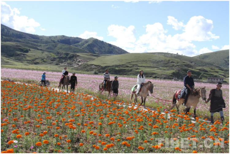 從理塘縣前往稻城亞丁機(jī)場方向60多公里,翻過一座小山坡,一片如夢似幻的花海景觀瞬間映入眼簾。曾經(jīng)名不見經(jīng)傳的小山村——濯桑鄉(xiāng)漢戈村已實現(xiàn)“沙化地”到“花?!钡耐懽?,成為新的網(wǎng)紅打卡點。在花團(tuán)錦簇間拍照、在草原上騎馬,或者到旁邊康藏陽光種植基地采摘“極地果蔬”、購買農(nóng)民合作社的原生態(tài)農(nóng)副產(chǎn)品……游客可盡興體驗。