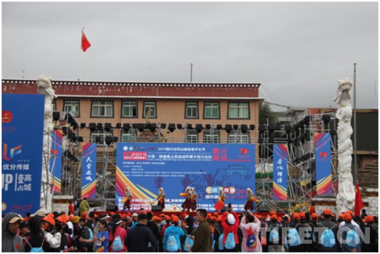 資料圖:在中國?理塘壹占高城越野賽半程馬拉松啟動儀式上,藏戲為活動熱身
