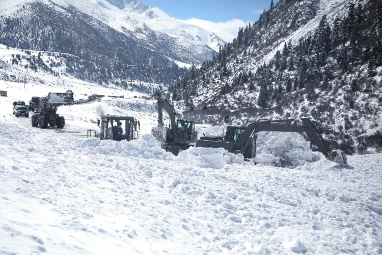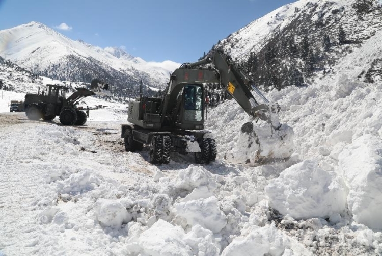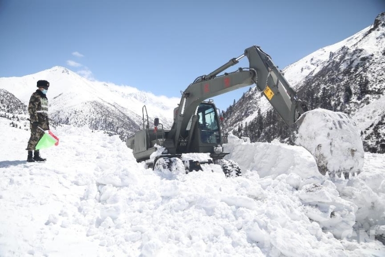 為盡快恢復通行,安全員時刻關注山體情況,確保一旦發(fā)生次生雪崩災害能夠及時傳達撤退命令。操駕員駕駛救援機械相互協(xié)調(diào)作業(yè),快速清理路基塌方體。官兵們還給滯留群眾發(fā)放了食物。