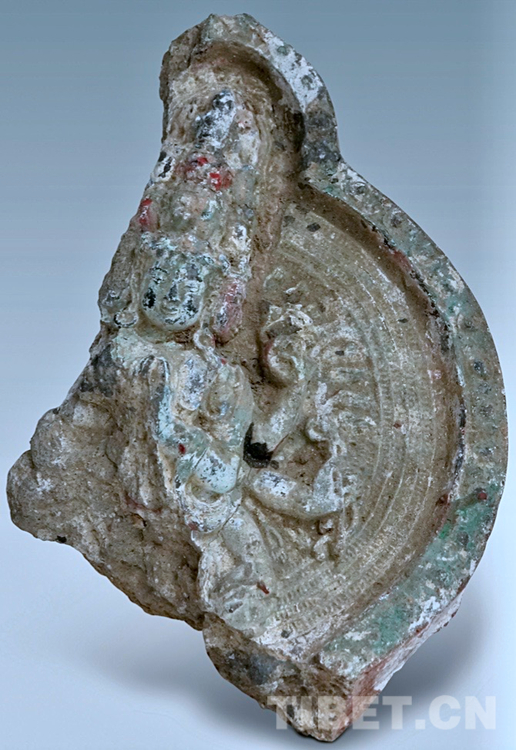 我問小和尚,我可以請一個走嗎?小和尚愣了一下,跑開去問旁邊的大和尚,回來時搬了一個凳子,爬上去幫我拿。他挑了兩塊相對完整一點的殘件給我,我如獲至寶。淡彩的千手觀音,光殘件就有20多公分高,實在是很大尺寸的擦擦?;厝サ穆飞?,怕兩塊寶貝在車?yán)锉慌鲋?,我用自己的衣服把它們裹得?yán)嚴(yán)實實?;氐奖本掀渲幸粔K,送去給了我最最尊敬和喜愛的藏學(xué)老師,和他一起鑒賞,聽他給我解讀。