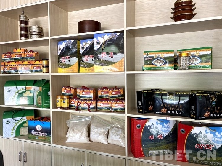 圖為嘉黎縣畜產(chǎn)品拉薩直銷店銷售的嘉黎縣各農(nóng)牧民合作組織生產(chǎn)的畜牧產(chǎn)品 攝影:王媛媛