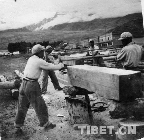 圖為當年十八軍指戰(zhàn)員自己伐木建房子