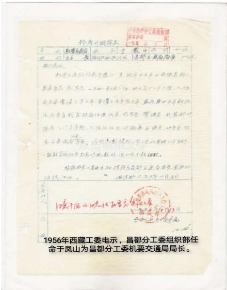 在1956年全國轟轟烈烈的社會主義改造高潮中,西藏迎來了一個劃時代的日子,4月22日西藏自治區(qū)籌備委員會成立,領導人講話都提到了民主改革問題。西藏工委在執(zhí)行中央“慎重穩(wěn)進”的過程中,準備在昌都、日喀則實行民主改革試點。因之接踵而來的是擴大機構增加人員,進行大力宣傳和試點。父親負責的昌都分工委機要交通站也在擴充之列,由機要交通站擴充為機要交通局,直屬昌都分工委領導。在西藏工委電示下,昌都分工委組織部下文任命父親為機要交通局局長,周孝山為副局長,從1956年10月16日走馬上任。母親非常清楚地記著機要交通局除了上面提到的幾位,還有陶躍忠、王佳廉、唐俊生、韓進先、鄭海超等近20多位從事機要交通的同志。