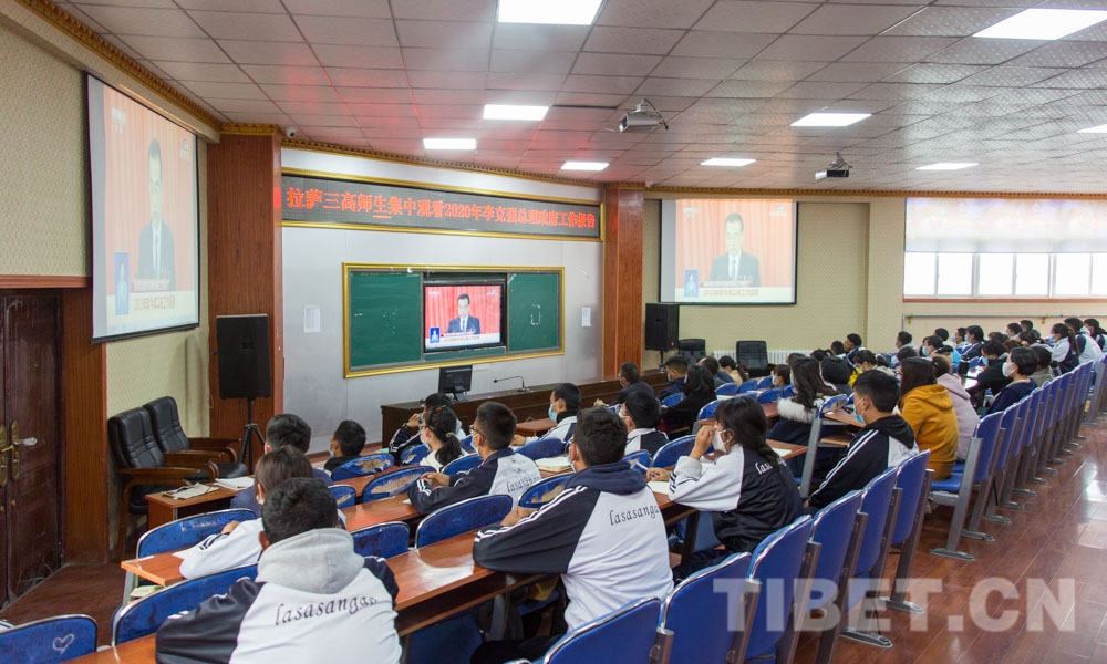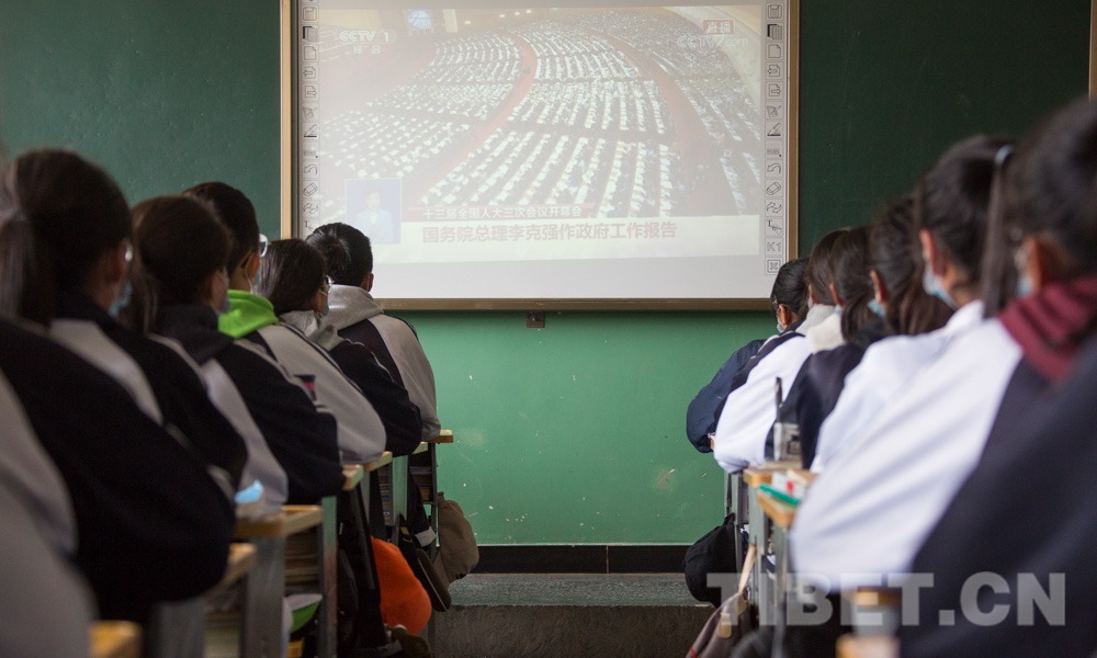 中國西藏網(wǎng)訊 5月22日,第十三屆全國人民代表大會第三次會議22日上午在人民大會堂開幕。西藏自治區(qū)拉薩市第三高級中學的師生通過直播的方式觀看開幕式。