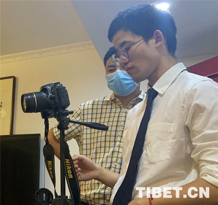 圖為中國西藏網(wǎng)記者正在準備連線采訪