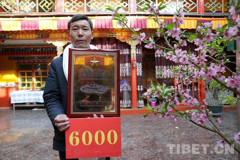 圖為瓊結(jié)縣普布旦增家經(jīng)營(yíng)的雪康桑家庭旅館榮獲“銀星”家庭旅館 攝影:曲杰