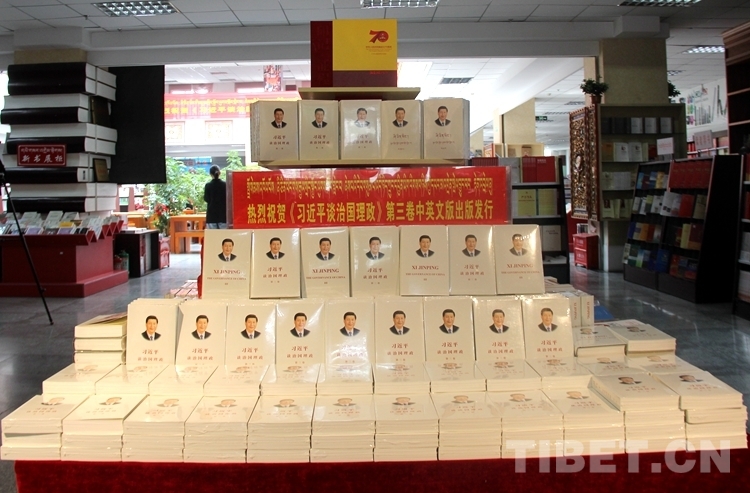 圖為西藏拉薩市新華書店碼放整齊的《習(xí)近平談治國理政》第三卷 攝影:趙二召