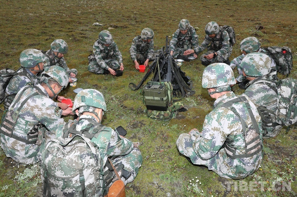 到達(dá)19號界樁后,巡邏官兵們坐在一起,拿出干糧,補充體力。在海拔5000多米的地方,連續(xù)翻山越嶺,體力嚴(yán)重透支,有些官兵一度出現(xiàn)高反,幸虧被戰(zhàn)友及時發(fā)現(xiàn),吸氧緩解后,大家開始向最終目的地18號界樁進(jìn)發(fā)。