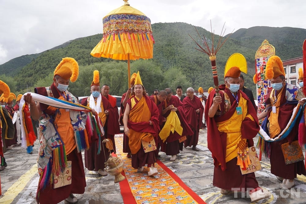 同樣期盼著十一世班禪到來(lái)的還有巴青縣苯教寺院巴倉(cāng)寺央旦桑布等眾僧。8月22日,十一世班禪參訪巴倉(cāng)寺了解寺院歷史文化,登上杜康殿寶座并為僧眾摸頂。