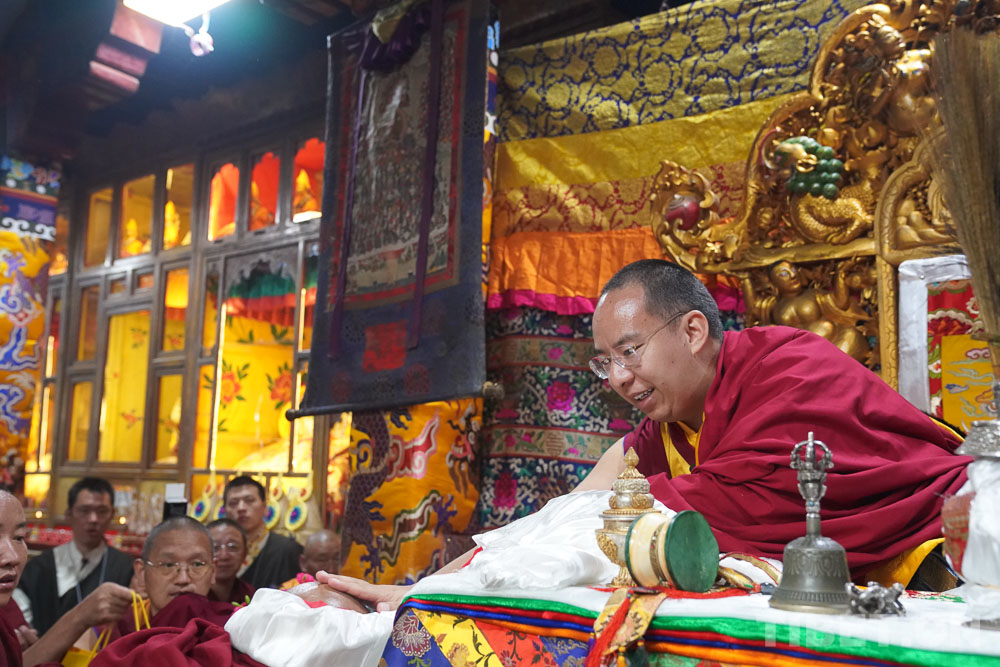 圖為十一世班禪在贊丹寺為僧眾摸頂 攝影:王淑