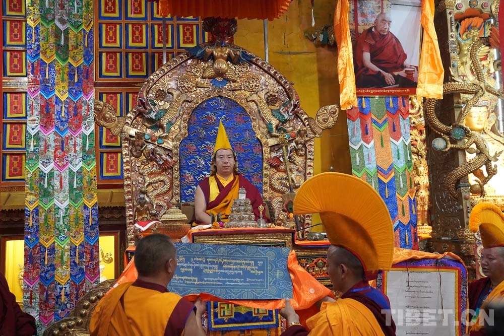 圖為十一世班禪在榮布熱登寺誦經(jīng)祈愿 攝影:王淑