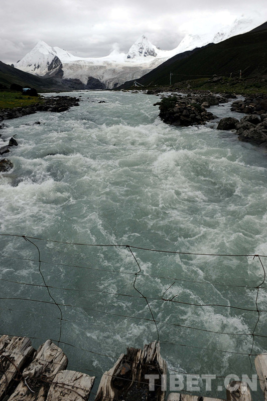 圖為冰川在山腳下不斷地融化后奔流而下,成為怒江的一個支流(唐召明2014年7月10日攝)
