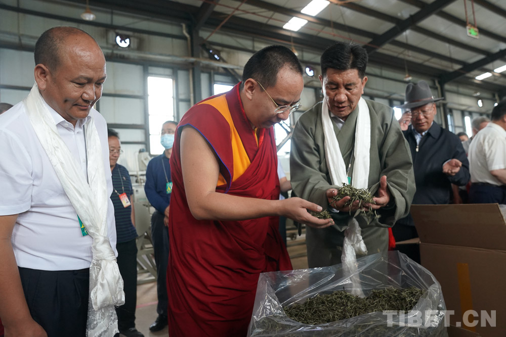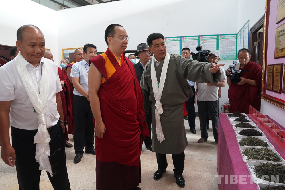 圖為十一世班禪在茶場生產車間察看茶葉加工情況 攝影:王淑