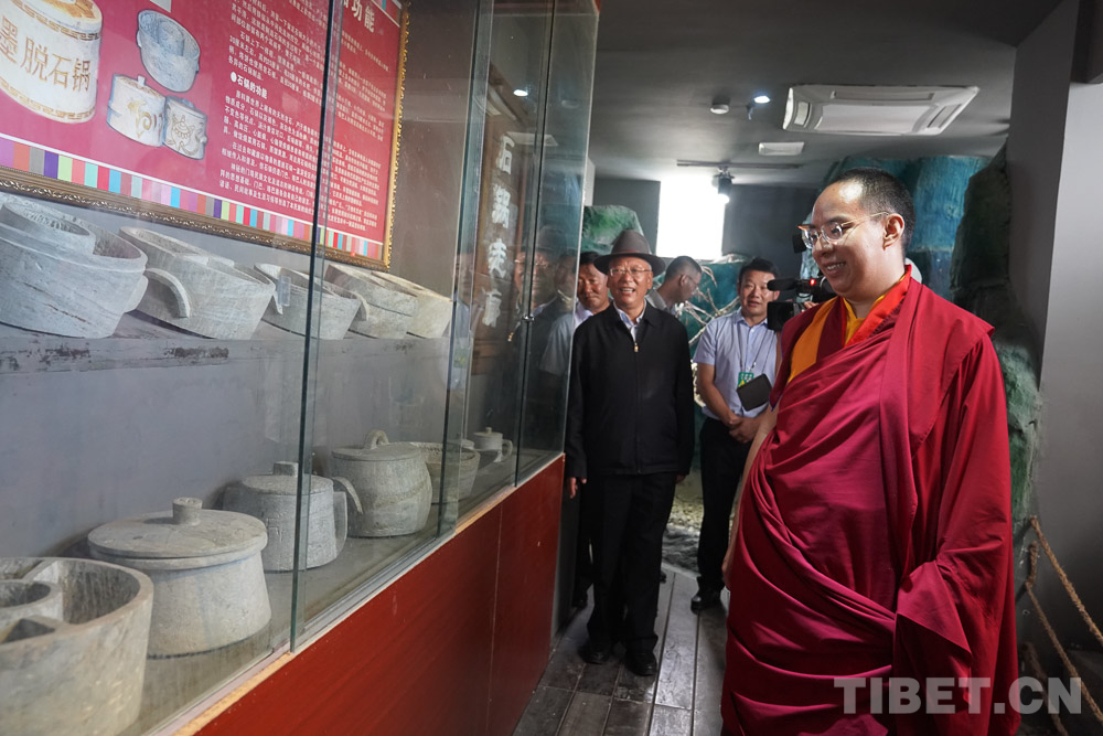 8月31日,十一世班禪來到博物館,饒有興致地參觀了墨脫農耕文化、宗教藝術、語言文學、民族生活習俗、建筑展、民族服飾、手工技藝等。