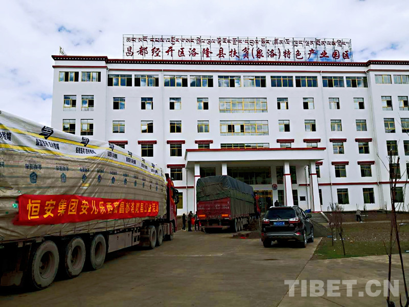 圖為裝載捐贈品的貨車抵達(dá)洛隆縣