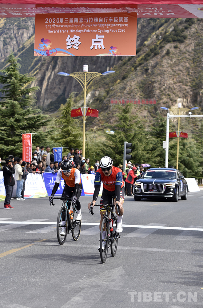 圖為2020第三屆跨喜馬拉雅自行車極限賽公路自行車賽第一段男子組參賽選手抵達終點 攝影:王媛媛