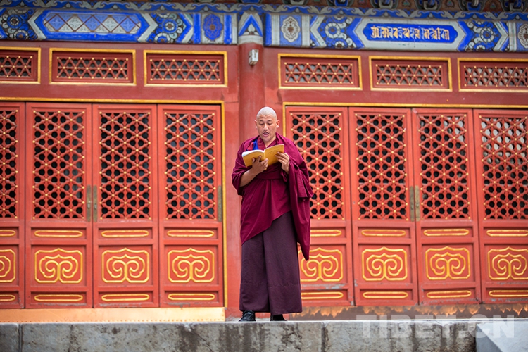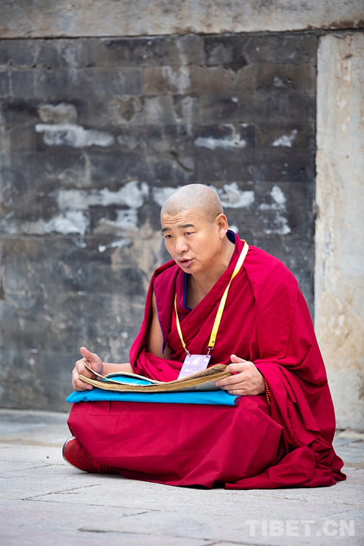 圖為即將參加2020年藏傳佛教第十六屆“拓然巴”高級學銜畢業(yè)考試辯經(jīng)考試的學僧專注誦經(jīng) 攝影:許娜