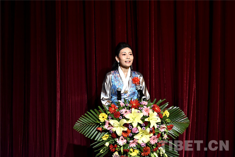 圖為紀(jì)念西藏自治區(qū)藏劇團(tuán)成立60周年會(huì)議現(xiàn)場(chǎng),西藏自治區(qū)藏劇團(tuán)青年演員平珍發(fā)言 攝影:王媛媛