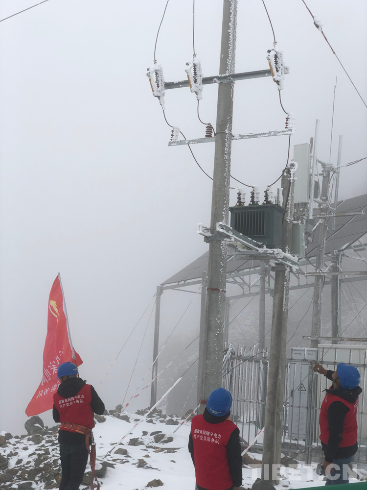 圖為國(guó)網(wǎng)西藏電力有限公司電力職工正在山南市隆子縣運(yùn)維檢修