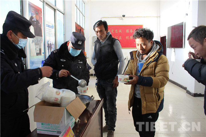 中國西藏網(wǎng)訊 “請大家有序排隊,準(zhǔn)備好有效證件,等待接受查驗……”近日,西藏自治區(qū)日喀則邊境管理支隊魯魯邊境檢查站迎來日喀則藏歷新年“回鄉(xiāng)潮”高峰,待檢車輛排成長龍,執(zhí)勤民警們嚴(yán)格按照程序,有條不紊地為進站的車輛和人員進行例行檢查。駕駛員打開窗戶,一下子被寒氣凍得不停哆嗦。寒風(fēng)中的執(zhí)勤民警唯有搓搓手、哈哈氣,認(rèn)真完成每一項檢查。
