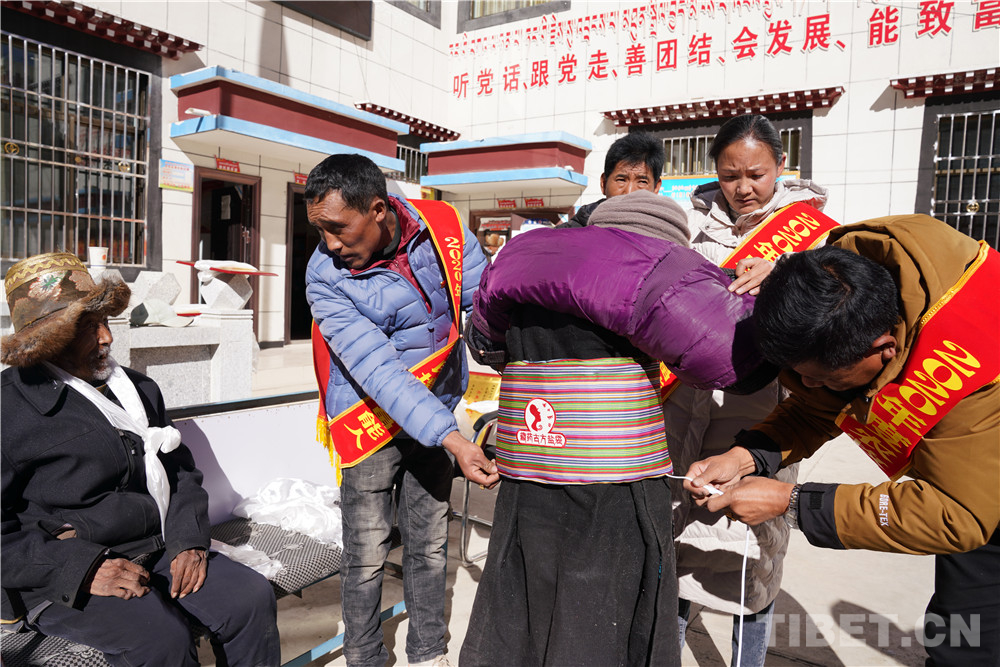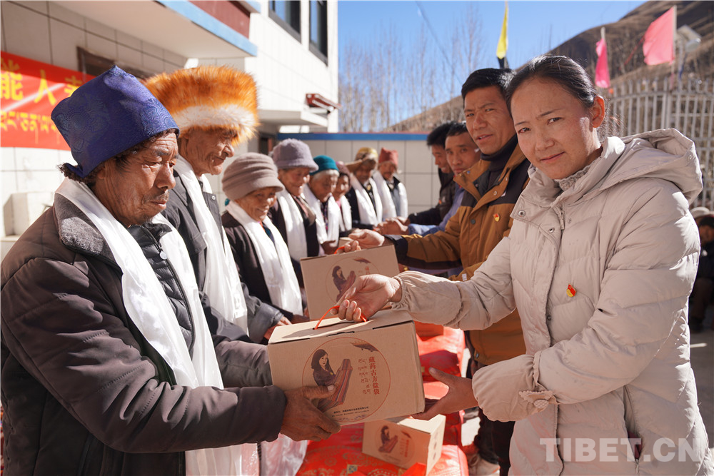 先富起來(lái)的人們集中慰問(wèn)了村里10名老人,送去了10條被子、10套藏藥古方鹽袋等價(jià)值近3000元的慰問(wèn)品,得到了村民們的贊譽(yù)。
