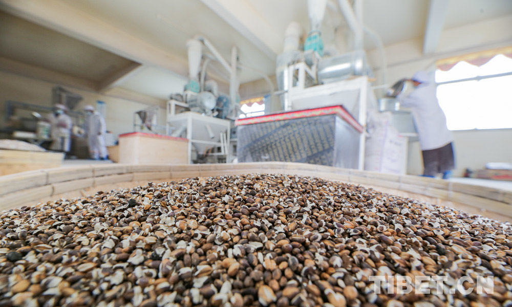 圖為山南市隆子縣洛旦農(nóng)畜產(chǎn)品加工合作社的加工廠里炒制的黑青稞(資料圖)