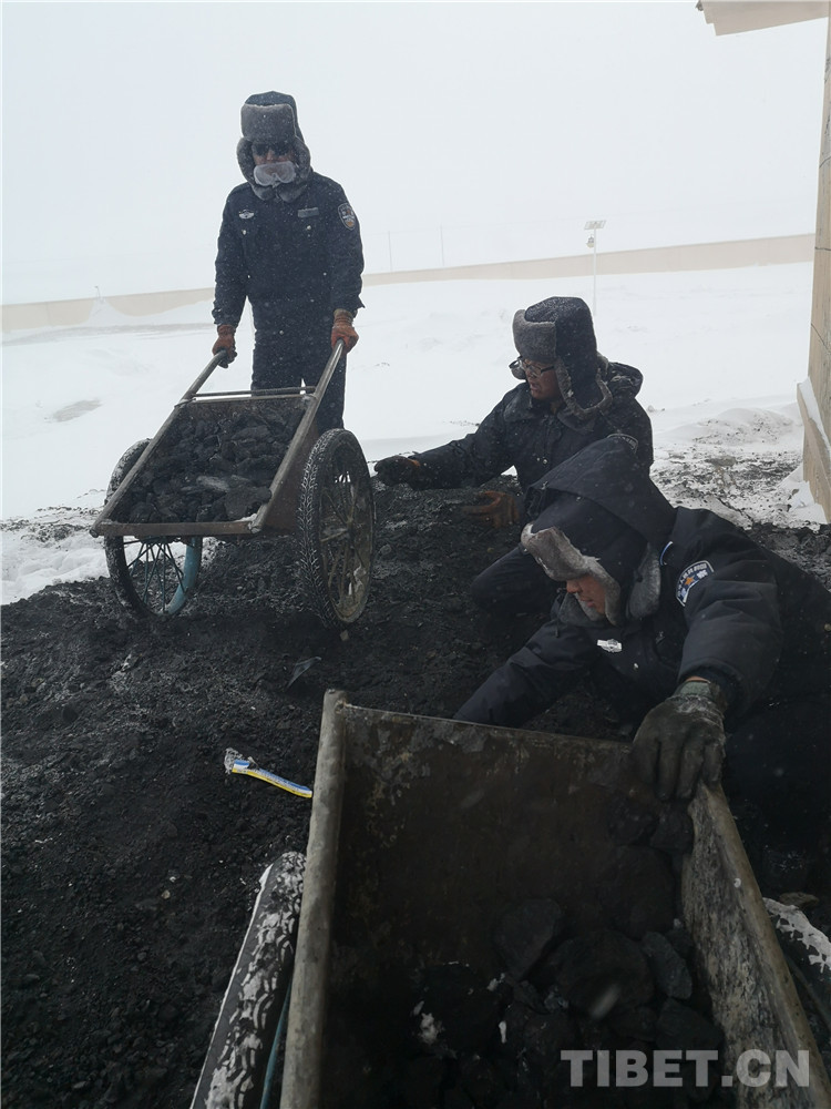 圖為邊境民警們在2019年春節(jié)前遭遇暴雪時(shí)運(yùn)煤