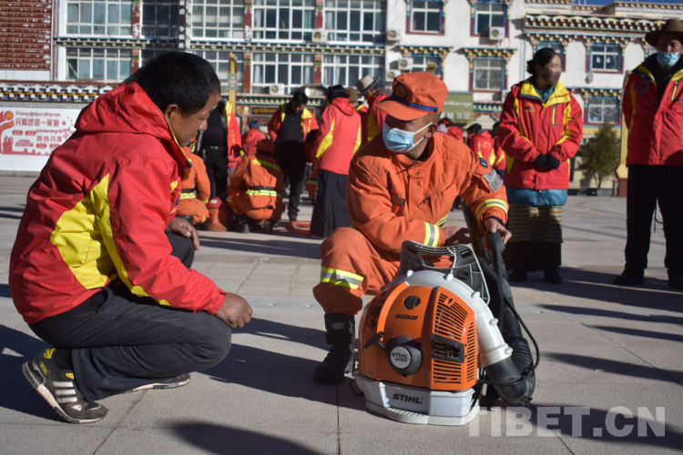 圖為左貢縣森林消防中隊(duì)駐芒康分隊(duì)指戰(zhàn)員耐心講解裝備使用方法