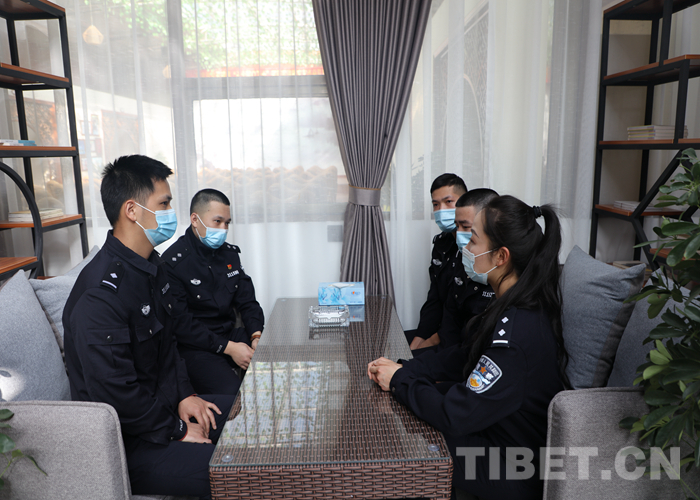 在半盞時光活動室,民警王美辰、徐春雨、扎西旺姆向參觀人員介紹了西藏歷史、藏族習俗禁忌以及阿里風土人情。參觀人員還主動向扎西旺姆學習日常藏語?!巴患捌?,格啦(意為謝謝,老師)”任會昭帶著廣東口音說道。一番表達,拉近了彼此間的距離。