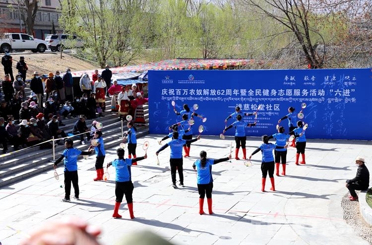中國西藏網(wǎng)訊 3月27日,為慶祝西藏百萬農(nóng)奴解放62周年,進(jìn)一步貫徹落實(shí)全民健身國家戰(zhàn)略,由西藏自治區(qū)體育局、西藏自治區(qū)體育總會(huì)、慈松塘社區(qū)黨支部主辦的慶祝百萬農(nóng)奴解放62周年暨全民健身志愿服務(wù)“六進(jìn)”活動(dòng)走進(jìn)慈松塘社區(qū)。