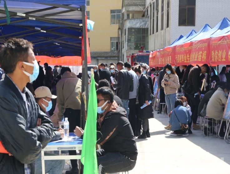圖為山南市“春風(fēng)行動(dòng)”暨待業(yè)大學(xué)生、城鎮(zhèn)失業(yè)人員專場(chǎng)招聘會(huì)現(xiàn)場(chǎng)。山南市人社局 供圖