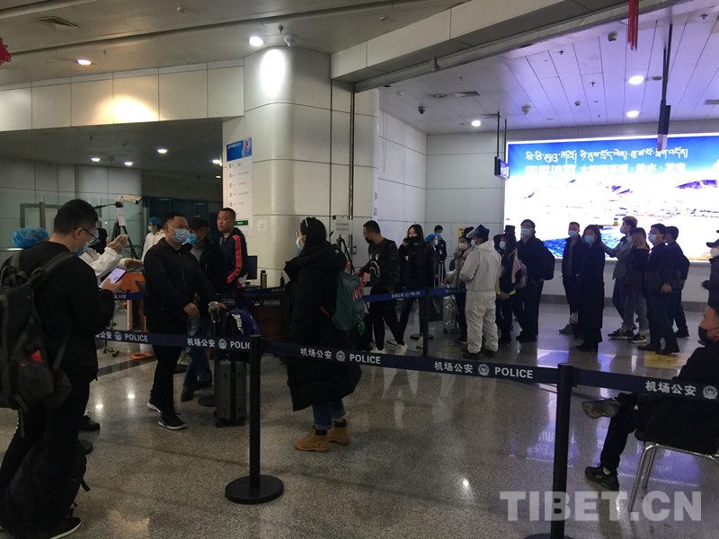 圖為貢嘎機(jī)場(chǎng)防疫檢查