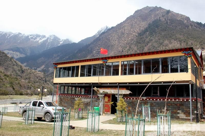 圖為次卓瑪在玉麥村的新家,五星紅旗在漂亮的二層藏式小樓屋頂迎風(fēng)飄揚(yáng),門前停著新買的皮卡車 攝影:劉莉
