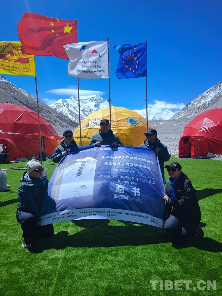 中國西藏網(wǎng)訊 5月9日,在位于西藏自治區(qū)日喀則市的珠峰大本營,長篇小說《珠峰海螺》的作者黃怒波先生和該書的出版方人民文學(xué)出版社,共同向日喀則市、西藏登山協(xié)會、西藏圣山登山探險服務(wù)有限公司隊員贈書。