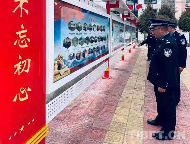 圖為朗縣邊境管理大隊(duì)民警參觀“不忘初心”展區(qū) 攝影:柳春偉