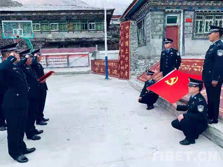 圖為朗縣邊境管理大隊(duì)全體黨員重溫入黨誓詞 攝影:柳春偉