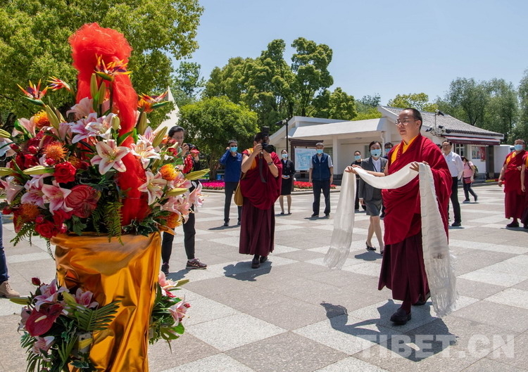 10日上午,班禪專程來(lái)到位于上海市青浦區(qū)練塘鎮(zhèn)的陳云紀(jì)念館,認(rèn)真聽(tīng)取了陳云同志有關(guān)事跡,并向陳云銅像敬獻(xiàn)哈達(dá),追思陳云同志愛(ài)國(guó)憂民、為共產(chǎn)主義事業(yè)鞠躬盡瘁的偉大一生……