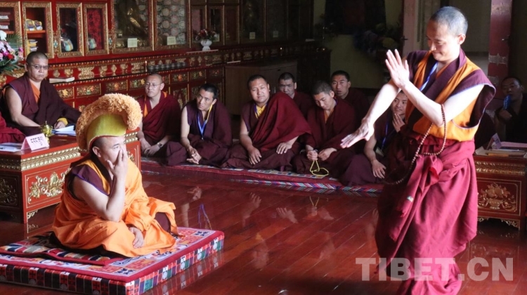 圖為格魯派辯經(jīng)考試現(xiàn)場