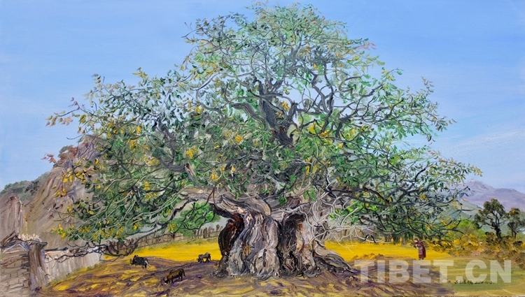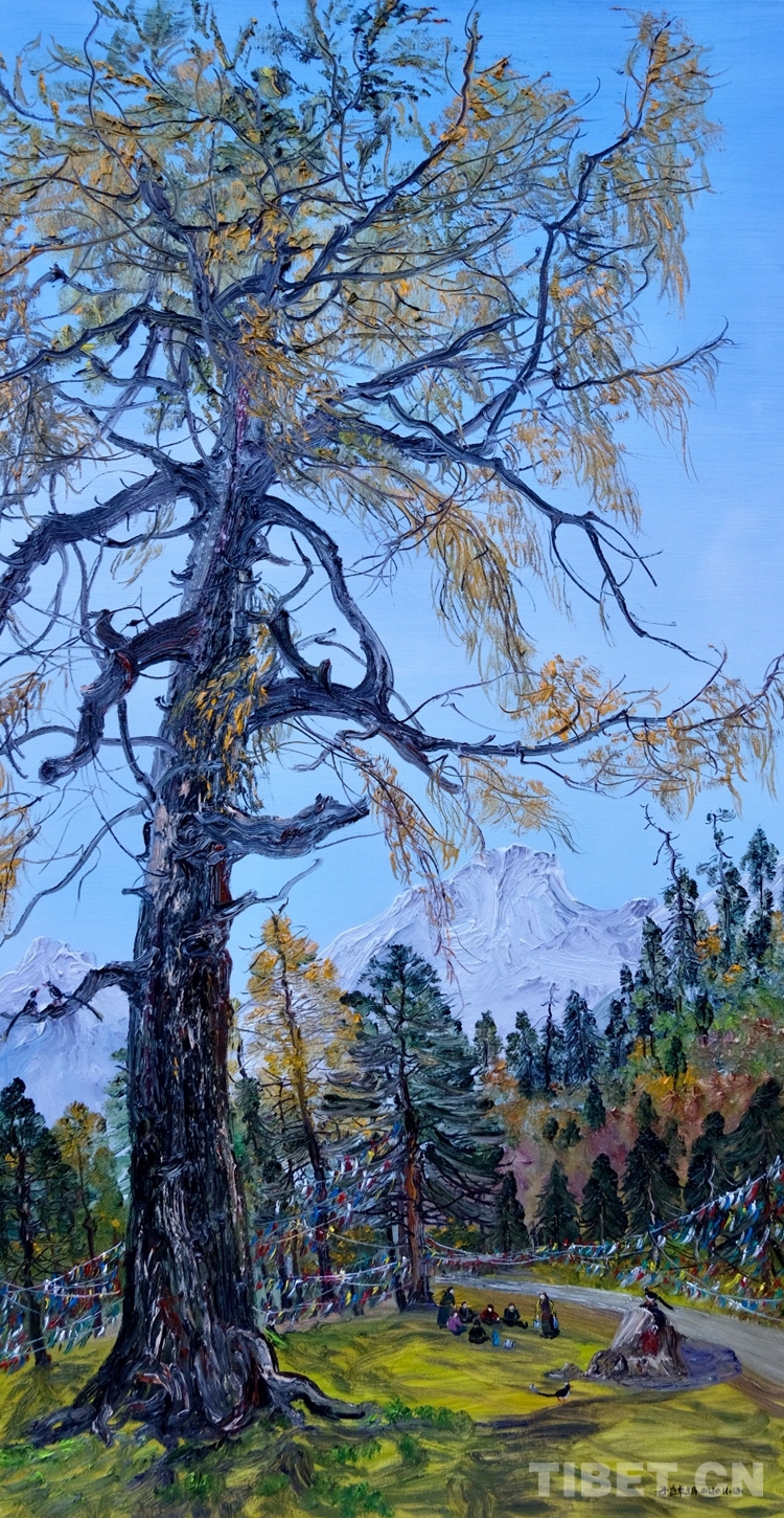 “展覽的油畫(huà)創(chuàng)作大多是在寫(xiě)生現(xiàn)場(chǎng)完成的,她的藝術(shù)風(fēng)格也清新生動(dòng)。她以自己的寫(xiě)生作品,令觀眾共享融入自然的至純大美,這是一種平易近人的審美方式?!眹?guó)家一級(jí)美術(shù)師余有心評(píng)價(jià)說(shuō),子白特別善于畫(huà)樹(shù),她的一幅幅佳作就是這些千年古樹(shù)的肖像,借審美而參悟自然生態(tài)的奧妙,帶觀眾領(lǐng)會(huì)高原生態(tài)文明之真諦。