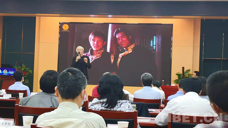 圖為美國作家、香巴拉工作室創(chuàng)始人龍安志在紀念西藏和平解放70周年學術(shù)研討會上進行題為《西藏文化可持續(xù)發(fā)展》的發(fā)言 攝影:劉莉