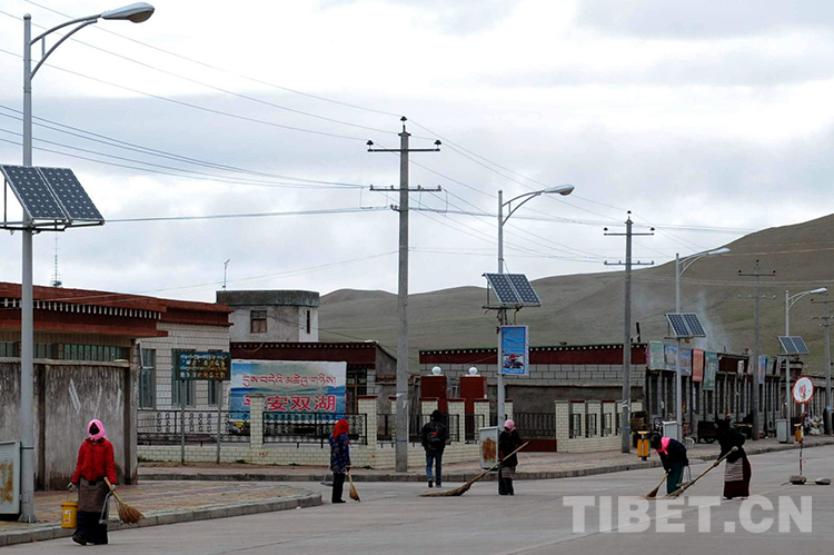 這是由中國石油所援建的雙湖特別區(qū)城鎮(zhèn)街道新貌(唐召明2009年攝)